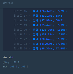 이 문제가 Level 1주제에 꽤 애먹게 했는데 반복문을 아무리 줄여 시간복잡도를 줄여도 테스트 케이스 3, 9, 10, 11, 15, 20, 21은 항상 시간초과가 나더라구요.. 그러다 생각이 난게 시간복잡도 문제가 아니라 호출해서 사용하는 라이브러리 함수에 문제가 있는게 아닐까 생각했더니 바로 답이 나오더라구요 하하핳ㅎㅎㅎ