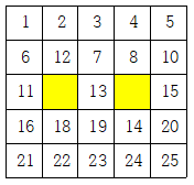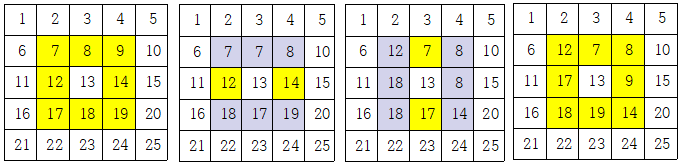 5*5행렬일 때 (2,2,4,4)로 값이 들어왔다면 시계방향으로 움직이는 값은 아래와 같다